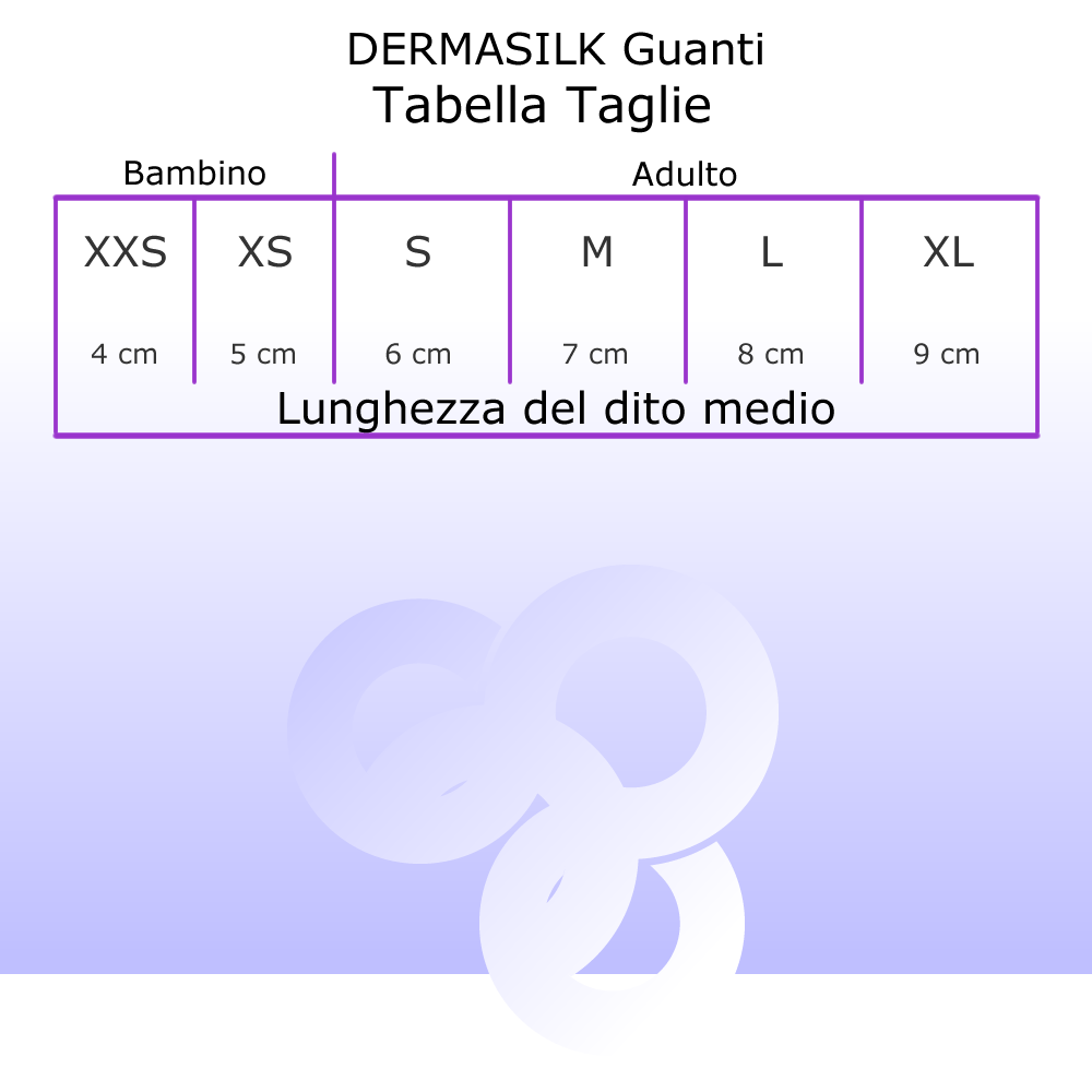 I guanti realizzati in filo di pura fibroina di seta microbiologicamente protetta fanno parte della linea di abbigliamento terapeutico DERMASILK (Dispositivo Medico di classe I – CE), studiata per rispettare e favorire il delicato equilibrio cutaneo anche in caso di pelle sensibile e allergica o in presenza di irritazioni e infiammazioni, dermatiti e micosi.